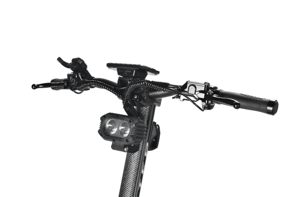 Equipped with KKE adjustable hydraulic suspension, the scooter absorbs bumps and rough terrain while providing smooth, stable handling.